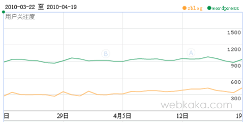 ????? 第二,現(xiàn)在越來越多的人甚至是初中生都建立了自己的獨(dú)立博客,這在前幾年是不可想象的,而在博客平臺(tái)的選用上,目前國內(nèi)用戶用得最多的無非就是用php開 發(fā)的wordpress和用asp開發(fā)的z-blog,而wordpress的用戶遠(yuǎn)比z-blog的用戶多,從百度指數(shù)的熱度可以看出來
