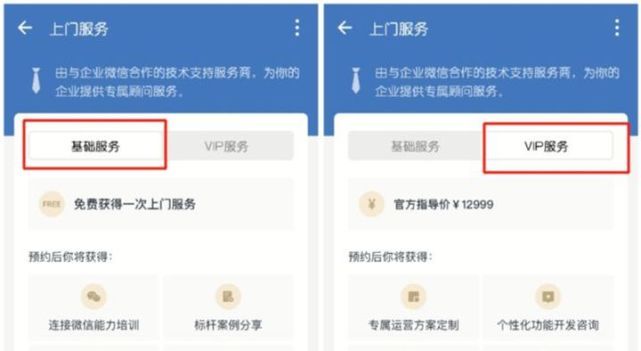在這里可以明確的告訴大家,上門服務(wù)是需要收費的,當(dāng)然,公司在開通企業(yè)微信之后都會有一次免費的基礎(chǔ)上門服務(wù),如果公司使用了這次服務(wù)之后再想使用上門服務(wù)的話,就必須要進行付費了。一般來說VIP上門服務(wù)的收取費用設(shè)置在12999元/次。如果你的企業(yè)想預(yù)約上門服務(wù),也可以查看官網(wǎng)聯(lián)系我們,我們會提供一些專業(yè)知識的解答!