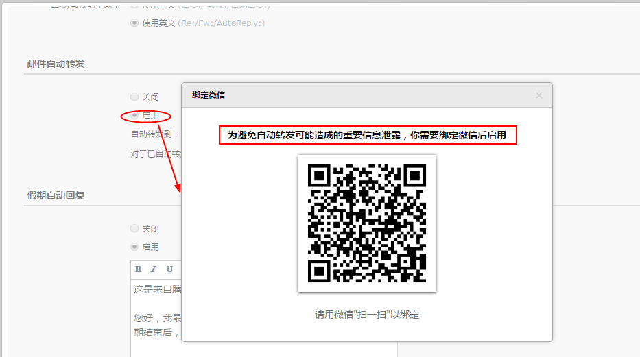 1.未綁定微信的用戶,需要綁定微信后才能啟用自動轉(zhuǎn)發(fā),如下圖: