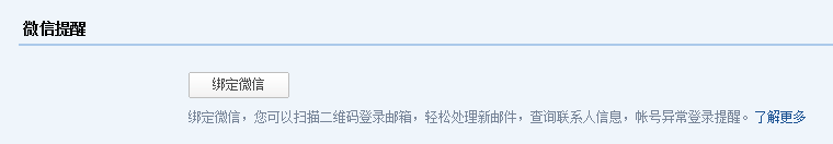 如果您開通了微信,可以點(diǎn)擊“綁定微信”啟用微信提醒服務(wù)。您收到郵件后會(huì)在微信上對您進(jìn)行提醒,查詢同事通訊錄,日歷事項(xiàng)提醒等溫馨提示。打開微信“掃一掃”掃描二維碼,并在微信點(diǎn)擊確認(rèn)綁定。