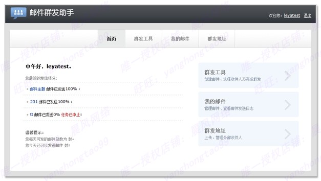 (3)專屬的郵件群發(fā)工具,不再需要擔(dān)心郵件群發(fā)受限制。群發(fā)網(wǎng)站注冊(cè)信、訂閱信、通知信等不再是難題。提供Web定制方式和Smtp發(fā)送接口,滿足不同場(chǎng)景的通知群發(fā)需求。